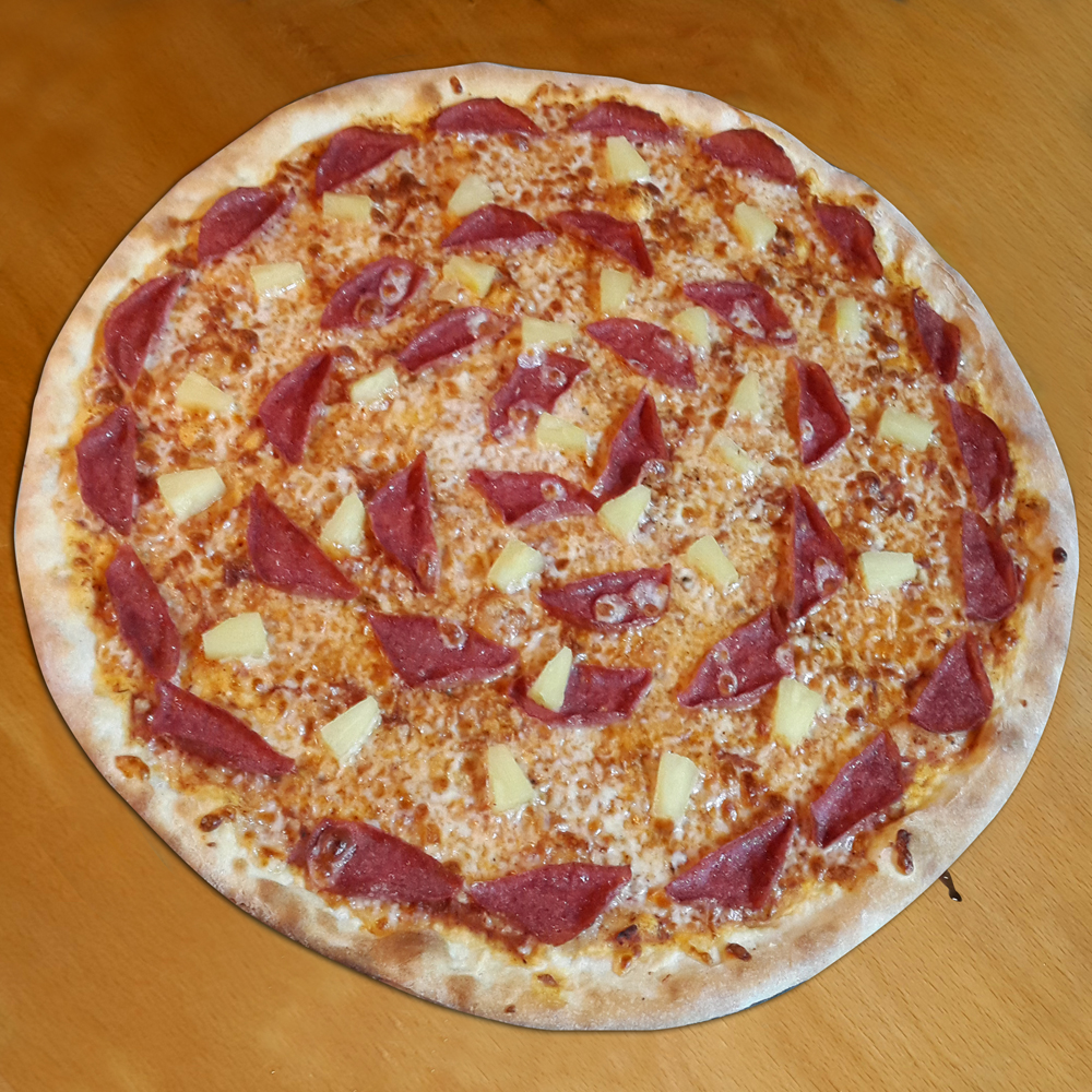 * Domates Sosu, Mozzarella Peyniri, Salam, Ananas, Kekik