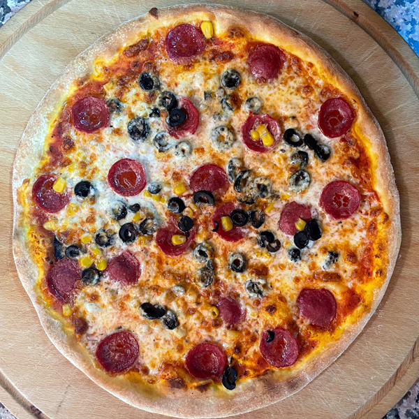 *Domates Sosu, Mozzarella Peyniri, Dana Peperoni, Mısır, Zeytin, Kekik